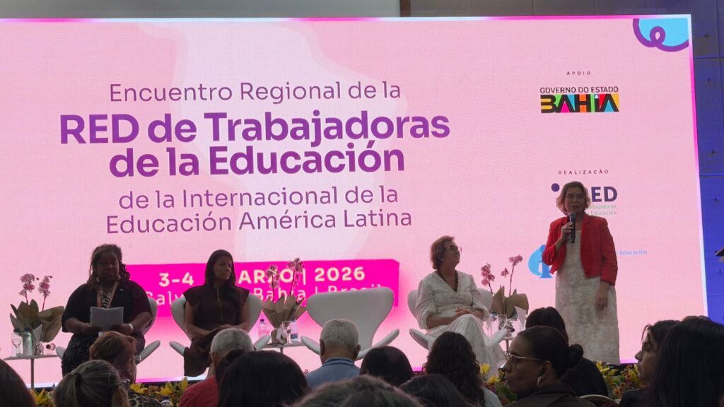 A FETEMS (Federação dos Trabalhadores em Educação de Mato Grosso do Sul) participa, desta terça (03) até quinta-feira (05) do Encontro Regional da Rede de Trabalhadoras da Educação da Internacional da Educação para a América Latina (IEAL), realizado em Salvador, na Bahia, reunindo lideranças sindicais de diversos países para debater igualdade de gênero, democracia e defesa da educação pública.